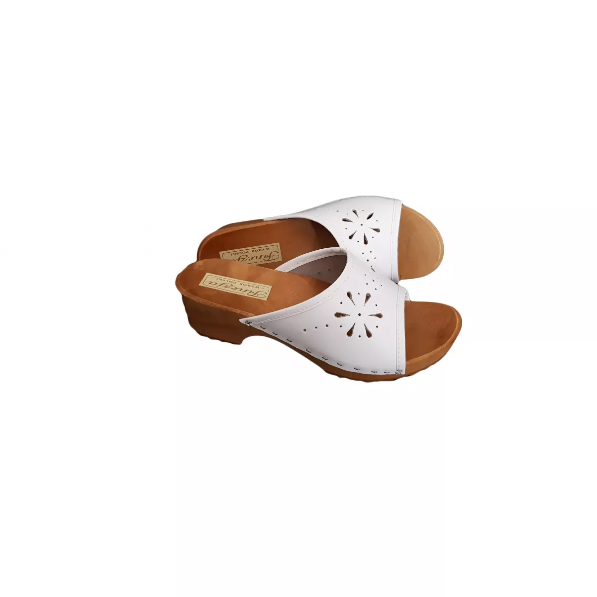 - Model N337: Białe drewniaki, które świetnie komponują się z różnorodnymi stylizacjami, idealne na każdą okazję.